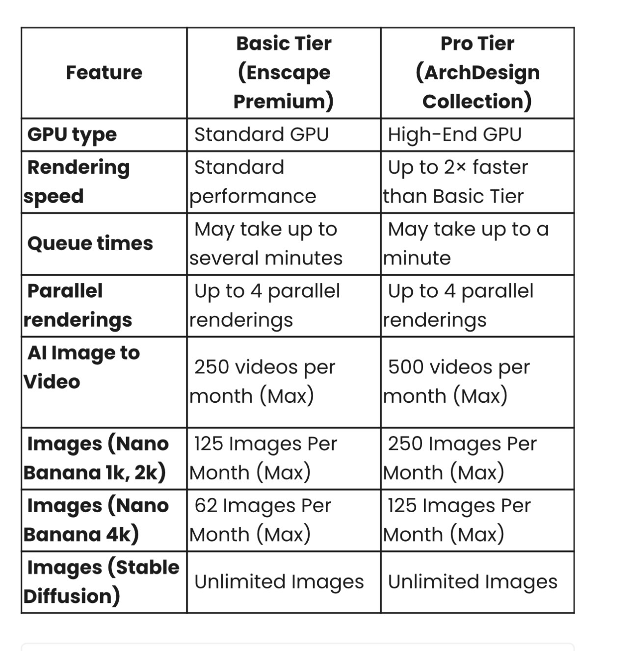 Hi Ben, I couldn’t find this table on the Chaos website. I wanted to ask you if there is a way to have more credits for Veras despite having already bought the annual Edu version. Is it possible to get a refund of the annual cost to be able to use it for the purchase of the commercial version? Unfortunately, 20 re-res per month are very few for any type of test. Thank you
