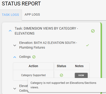 This is my setting and he status report (Why the category in not supported in Elevations / Sections view?):