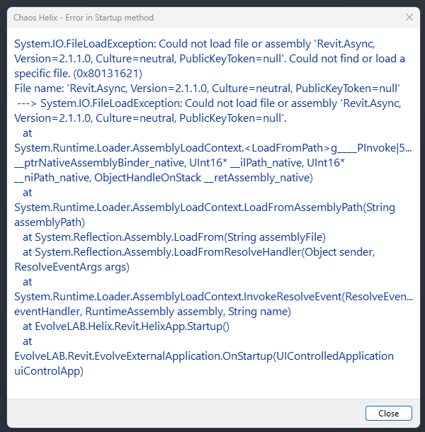 I just downloaded and installed Helix in trial form today for Revit 2026. When I try to open Revit I get this error message: