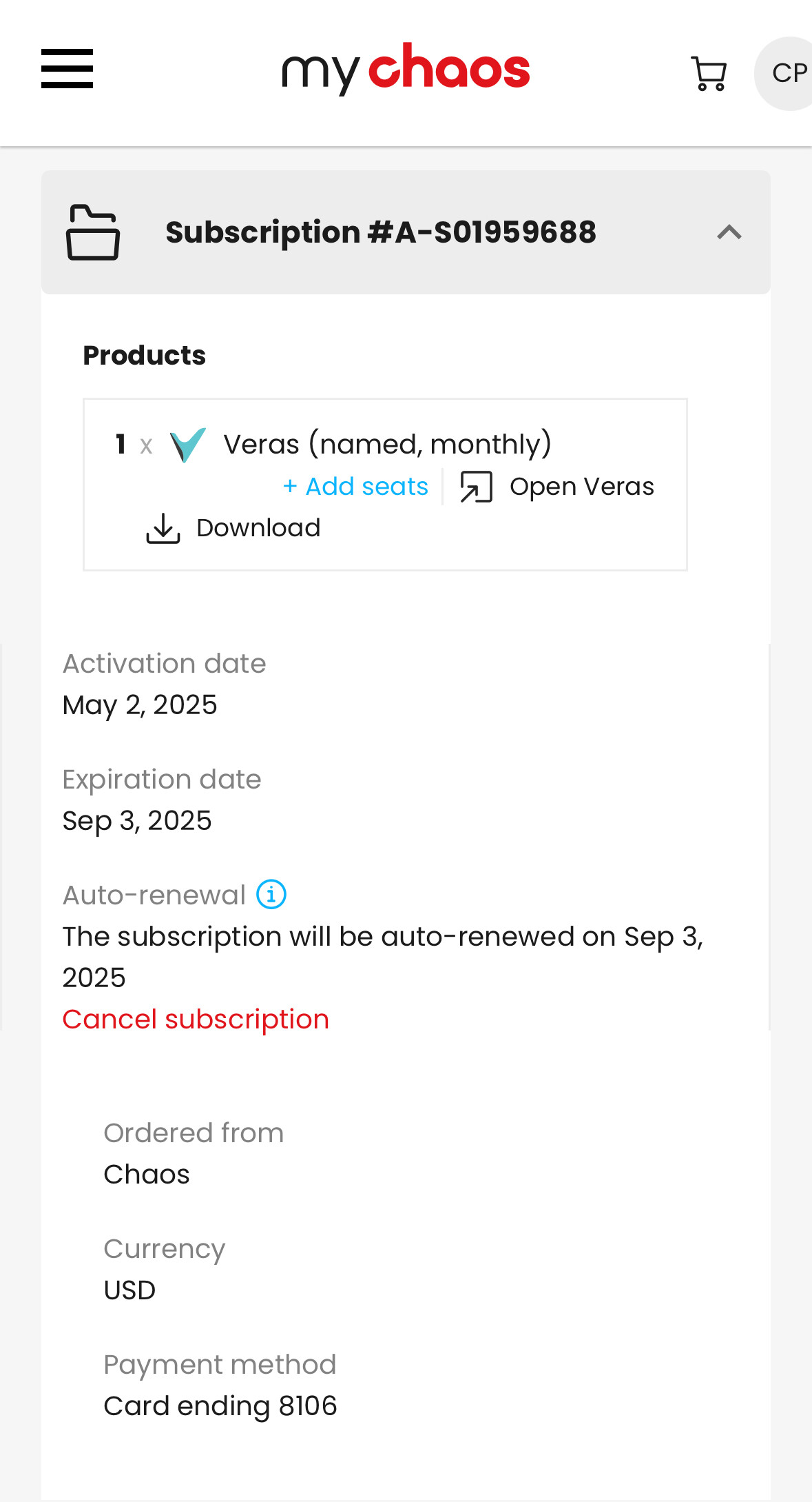 Ok I’m told that this can happen if there’s an issue with the payment for a subscription. I’m opening a Chaos Support ticket for the issue, and will cc you, so you can follow it.