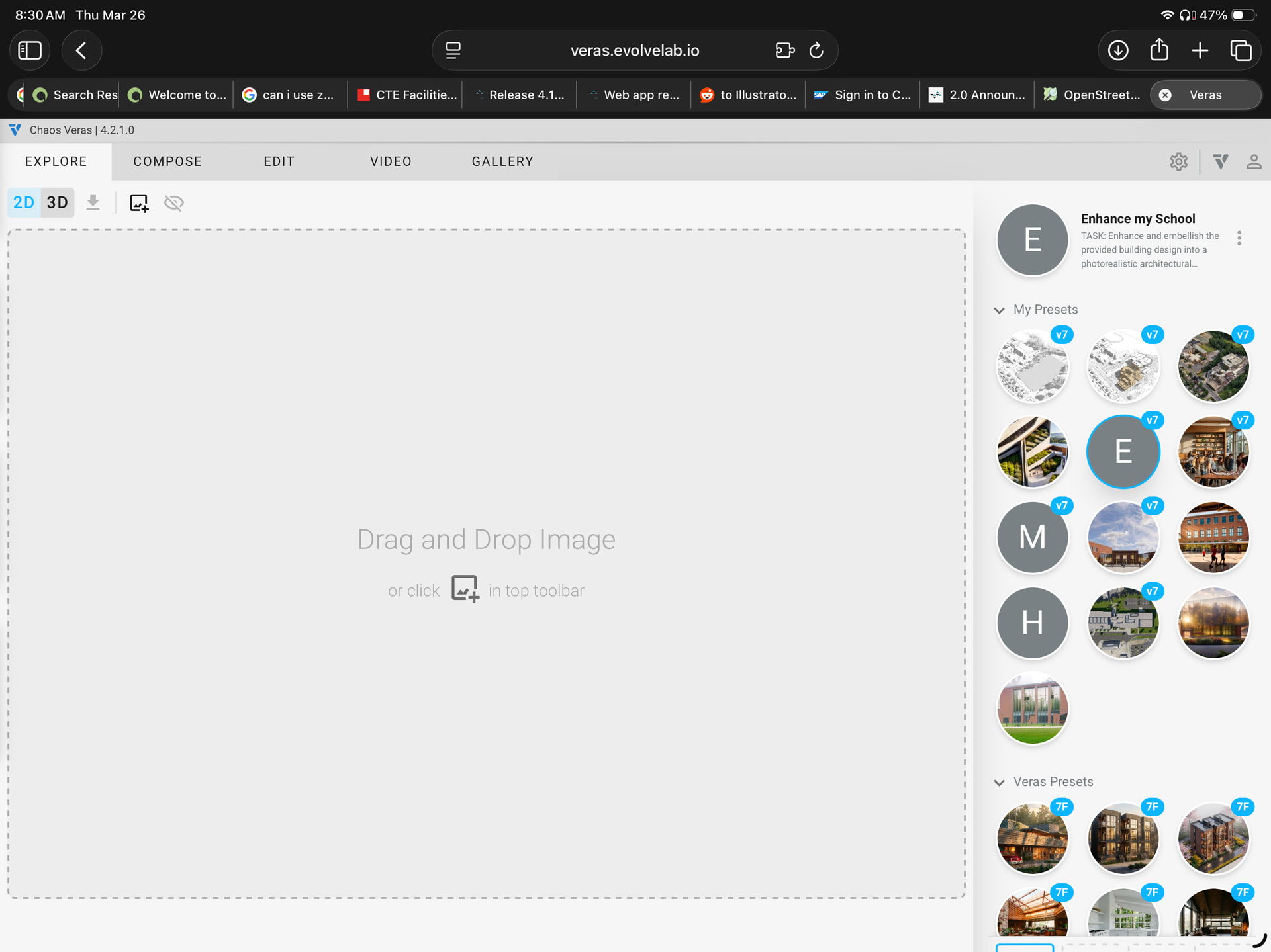 I am exploring using the iPad to work with the Veras web app. I have gotten really nice results while using the Apple Pencil in edit mode. But here is a pesky thing that happens with some frequency, the render buttons and the ‘render” button goes off screen of the bottom and it is impossible to get them back. Changing the size of the window brings them back, but only for a split second before the jump off screen again. Seems like is a web page/resolution issue that might be easy to solve by making the page scalable, or anchoring the render buttons off the bottom of the screen? Thanks for the feedback.